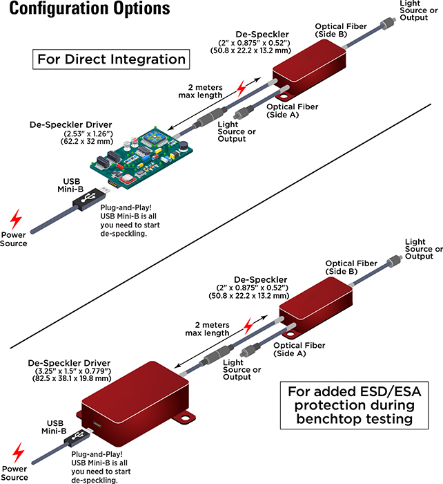 我们的OEM版本的激光散斑衰减器有最小的外壳,可提供或不提供驱动电子设备。