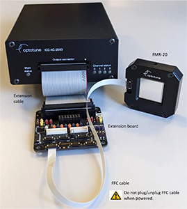 FMR-20 由 ICC-4C-2000 工业 4 通道控制器和 ICC-4C-2000 扩展套件(适配器板)控制。一个 ICC-4C-2000 有四个输出通道,支持两个 FMR-20转向镜。
